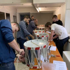 Anlässlich unseres 50-Jahre-Jubiläums haben wir uns, 20 Jahre nach der letzten Neuinstrumentierung, neue Trommeln angeschafft. Dank grosszügiger Sponsoren konnte die finanziell anspruchsvolle Hürde vollumfänglich gemeistert werden. Am 26. Oktober durften wir unsere neuen Instrumente der Bevölkerung und den grosszügigen Sponsoren vorstellen. Am Nachmittag fand ein Einzug und Platzkonzert für die Bevölkerung in Steinen statt. Mit dabei waren auch unsere Nachbarvereine aus Schwyz und Arth-Goldau. Am Abend konnten wir die Sponsoren der 27 neuen Holztrommeln zu einem Gala-Dinner begrüssen. Nebst den Holztrommeln für die Aktivsektion haben wir zudem fünf Holz- und Blechtrommeln für die Jungtambouren angeschafft. Die bestehenden 50 Blechtrommeln haben wir eigenständig in 350 Arbeitsstunden revidiert.