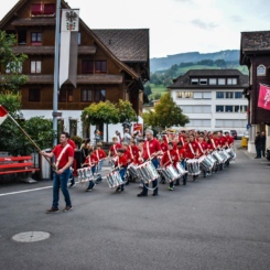 Den Tambourenverein Steinen speziell vorstellen zu müssen, das wäre etwa so, wie Wasser in den Rhein tragen. Aber: Am Rheinknie spielen oder trommeln die besten Tambourenvereine der Schweiz, und Steinen als Schwyzer Verein gehört dieser Liga an. Der Verein zählt 27 Aktivmitglieder und 47 Trommelschüler und gehört zu den besten Trommlerkorps der Schweiz. Und gestern überraschte ein Teil der Aktiven und vor allem der Trommelschüler die Steiner Bevölkerung mit dem Tambuure-Tag, «Der Idee des Tambuure-Tags liegt ein klares Konzept zugrunde. Corona-bedingt konnten wir uns in diesem Jahr nie der Steiner Bevölkerung präsentieren. Das Dorf hat uns gar nicht mehr wahrgenommen. Das wollten wir mit diesem speziellen Tag ändern. Wir wollten uns mit unsere Trommelkunst im Dorf zeigen», sagt Patrick Suter, Präsident des Vereins.